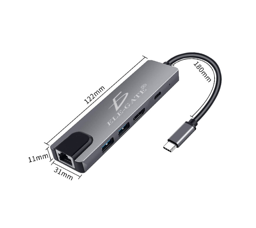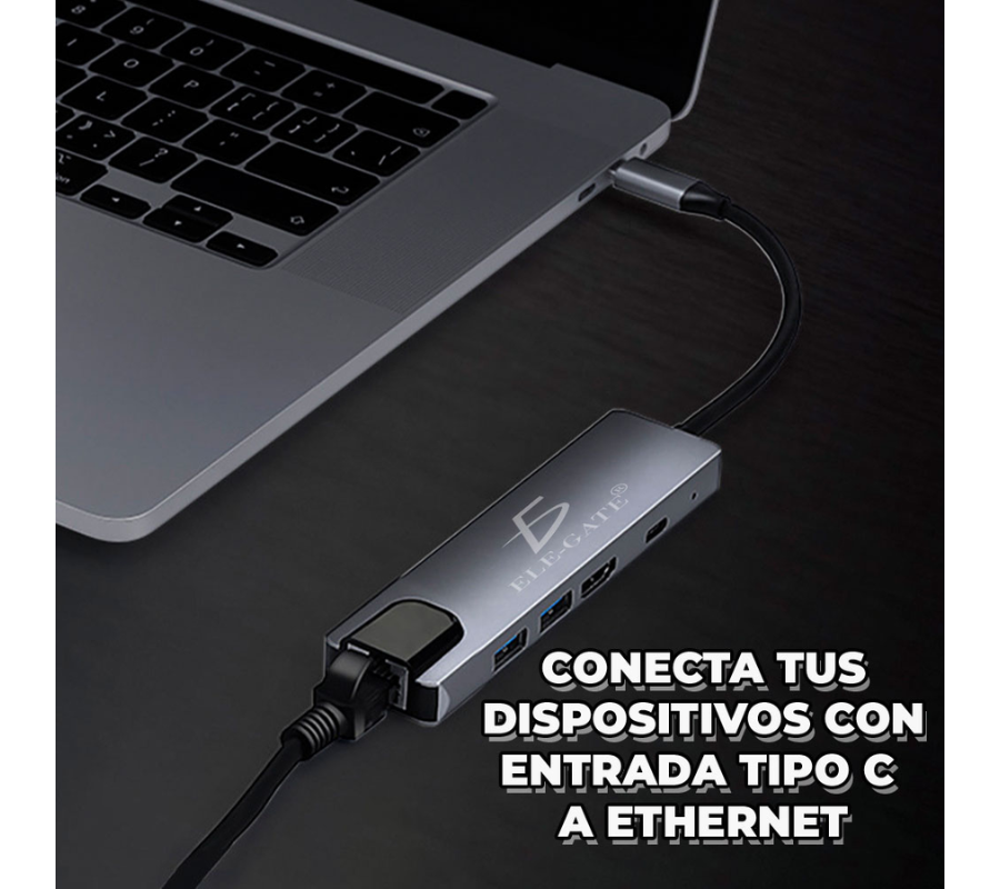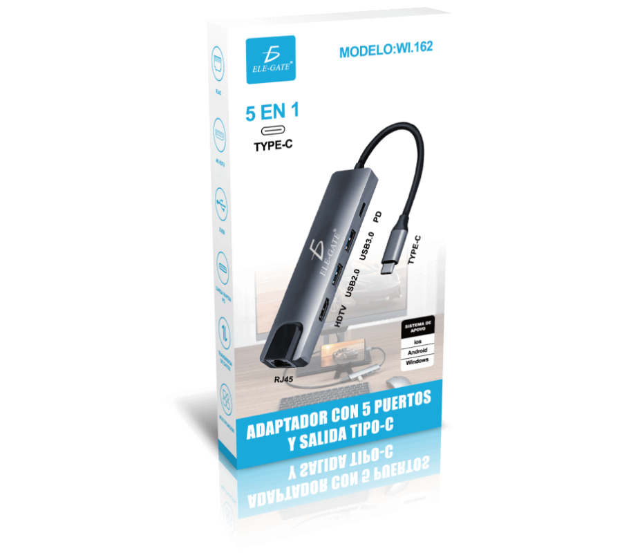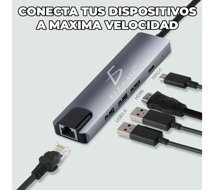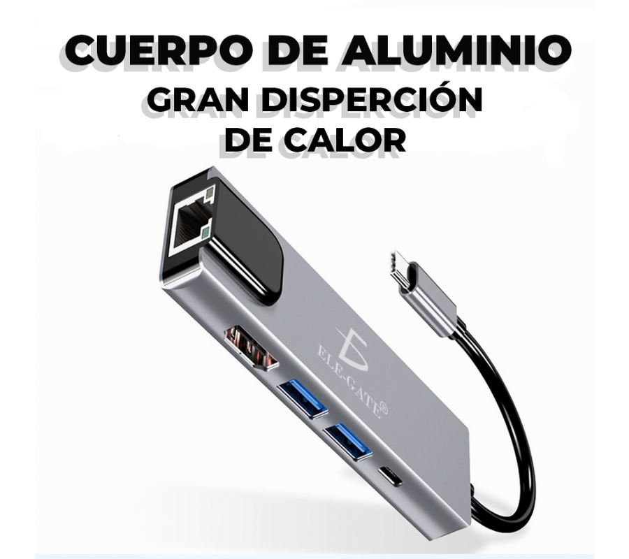 Adaptador con 5 puertos y salida tipo-c Con Cargar Rapida 100W