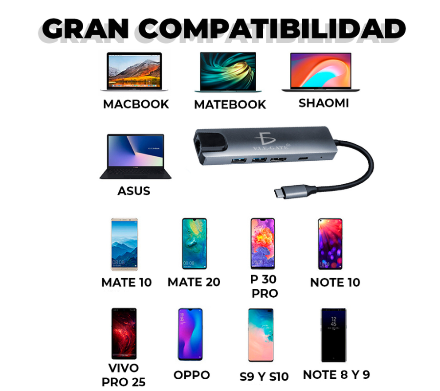 Apple: MacBook 12 pulgadas, MacBook Pro2016 / 2017/2018/2019, MacBook Air 2018/2019, iPad PRO2018