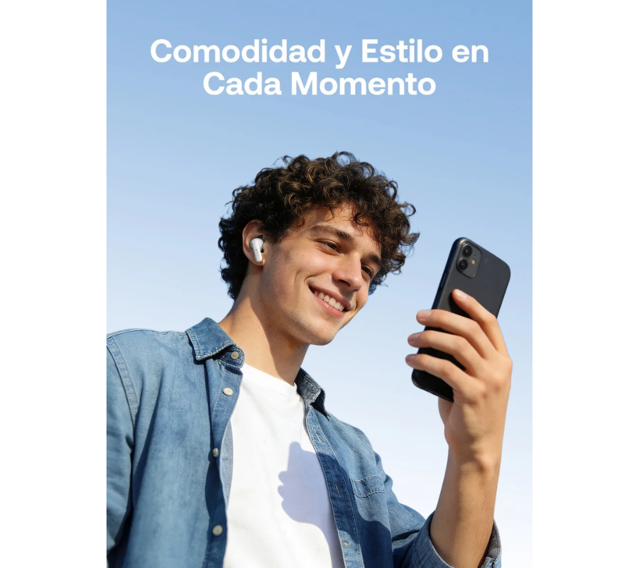 AU213 Auriculares inalámbricos compactos con Bluetooth 6.0 que ofrecen hasta 6 horas de reproducción con una sola carga y 24 horas con el estuche de carga. Su carga tipo C y su diseño ligero de 92 g los hacen ideales para desplazamientos diarios, trabajo y entrenamiento.