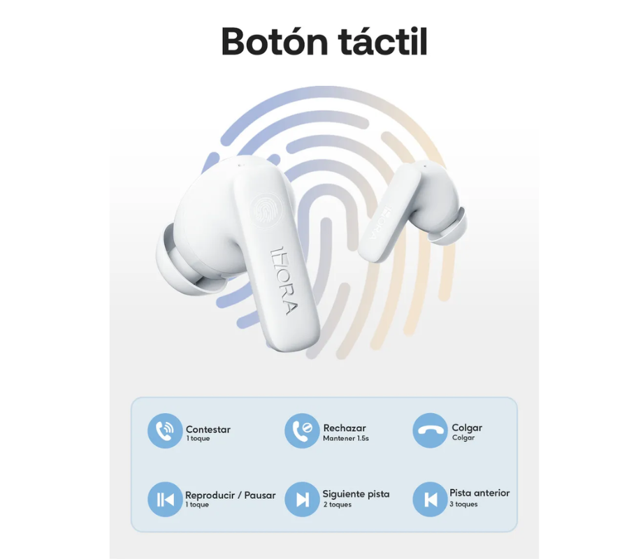 Audífonos Inalámbricos In-Ear 1HORA AUT213, Bluetooth 6.0, 6H, Blanco