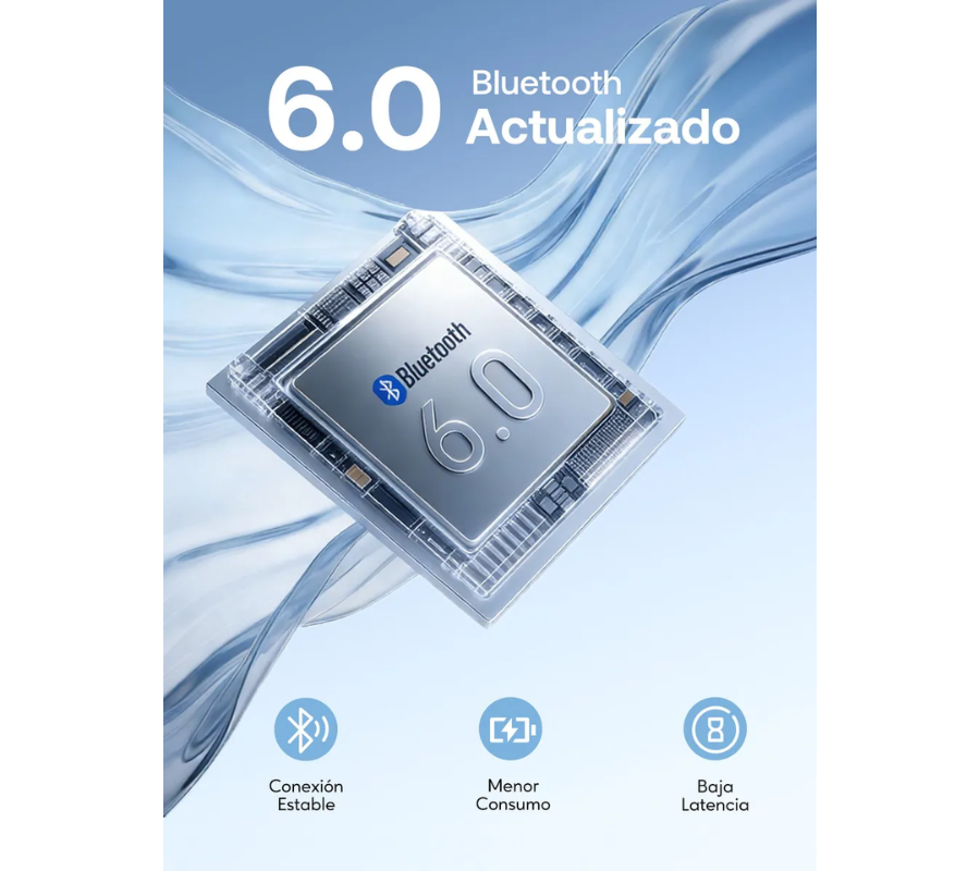 Disfruta de una experiencia de sonido clara y estable con la nueva tecnología Bluetooth 6.0, que ofrece conexión más rápida, menor latencia y mayor estabilidad.