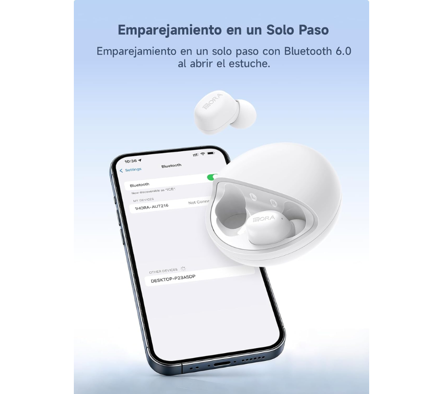 Audífonos Inalámbricos In-Ear 1HORA AUT216, Bluetooth 6.0, 8H, Blanco