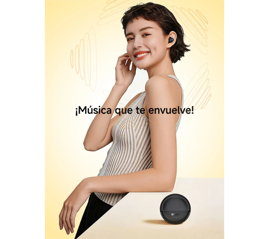 Su conectividad Bluetooth 5.4 garantiza una conexión rápida, estable y eficiente con tus dispositivos, mientras que su batería de larga duración te acompaña durante todo el día sin interrupciones.