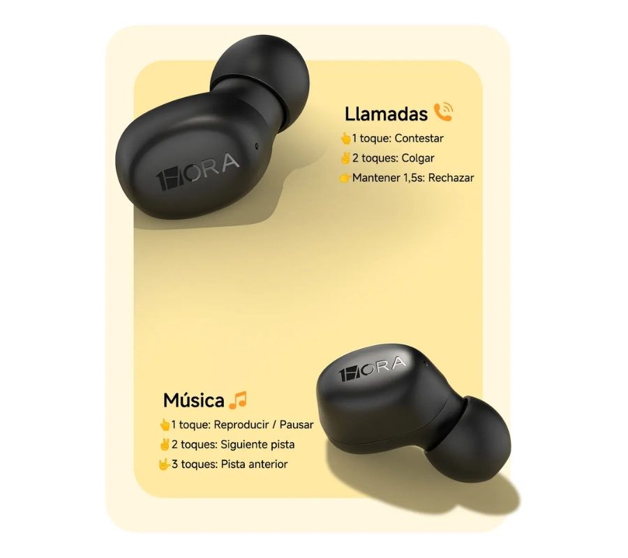 Audífonos Inalámbricos In-Ear 1HORA AUT216, Bluetooth 6.0, 8H, Negro