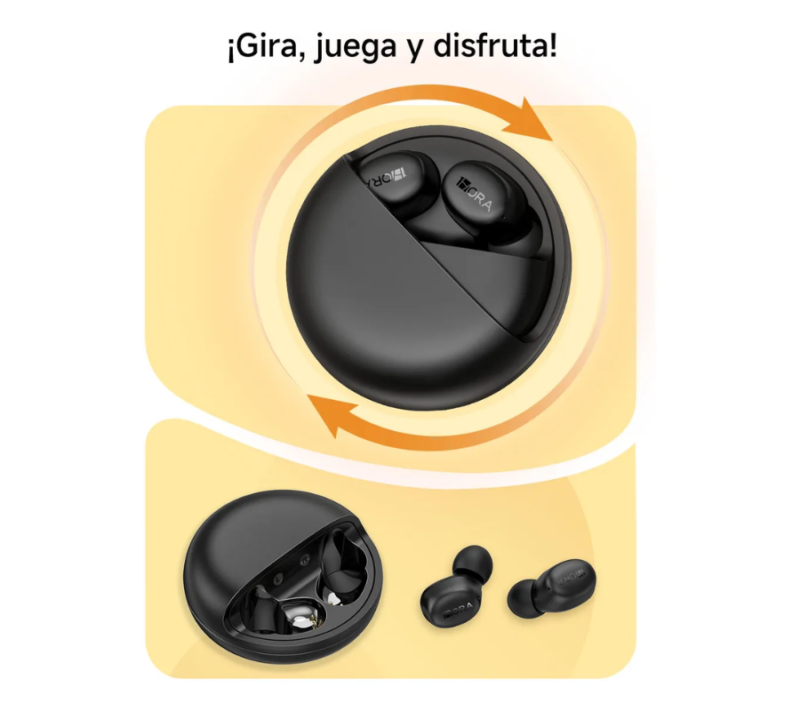Diseño innovador y funcional El estuche de carga con tapa giratoria no solo destaca por su estilo moderno y único, sino que también facilita una apertura práctica y segura. Su tamaño compacto permite llevarlo cómodamente en el bolsillo o mochila.