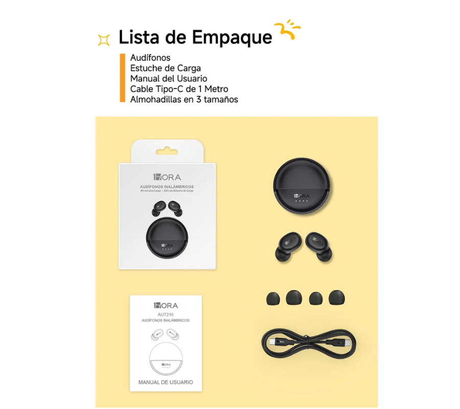 Audífonos Inalámbricos 1HORA AUT216 con Estuche Giratorio Disfruta de tu música, llamadas y contenido favorito con total libertad gracias a los audífonos inalámbricos 1HORA AUT216, diseñados para ofrecer comodidad, estilo y un rendimiento excepcional en todo momento.