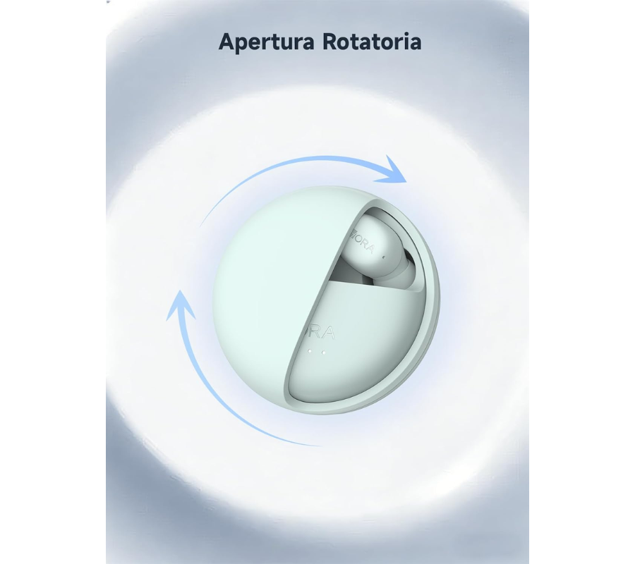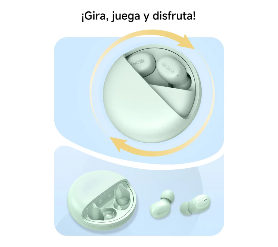 El estuche de carga con tapa giratoria no solo destaca por su estilo moderno y único, sino que también facilita una apertura práctica y segura. Su tamaño compacto permite llevarlo cómodamente en el bolsillo o mochila.