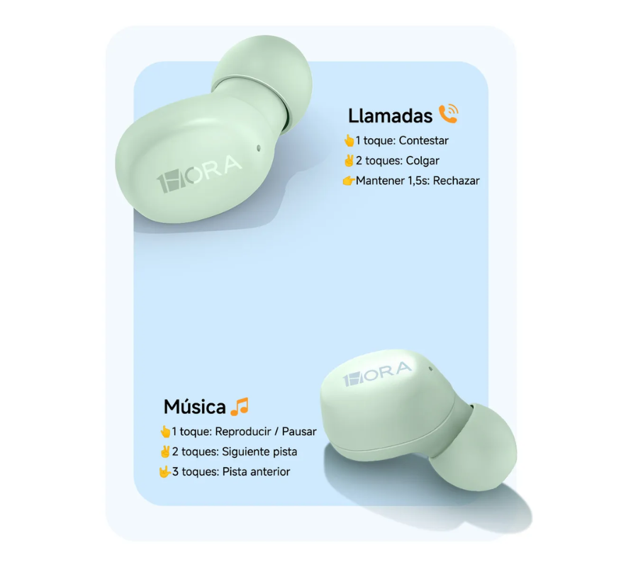 Audífonos Inalámbricos In-Ear 1HORA AUT216, Bluetooth 6.0, 8H, Verde