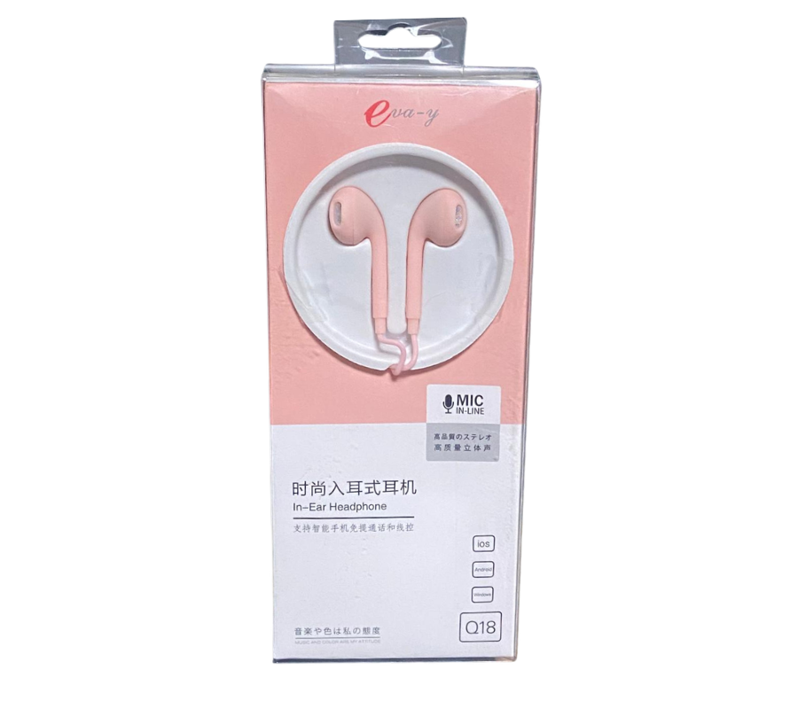 Audifono Alámbrico In-Ear EVA-Y Q18 Pastilla, , 3.5mm, Mic, Rosa