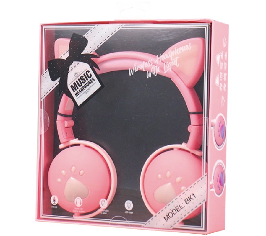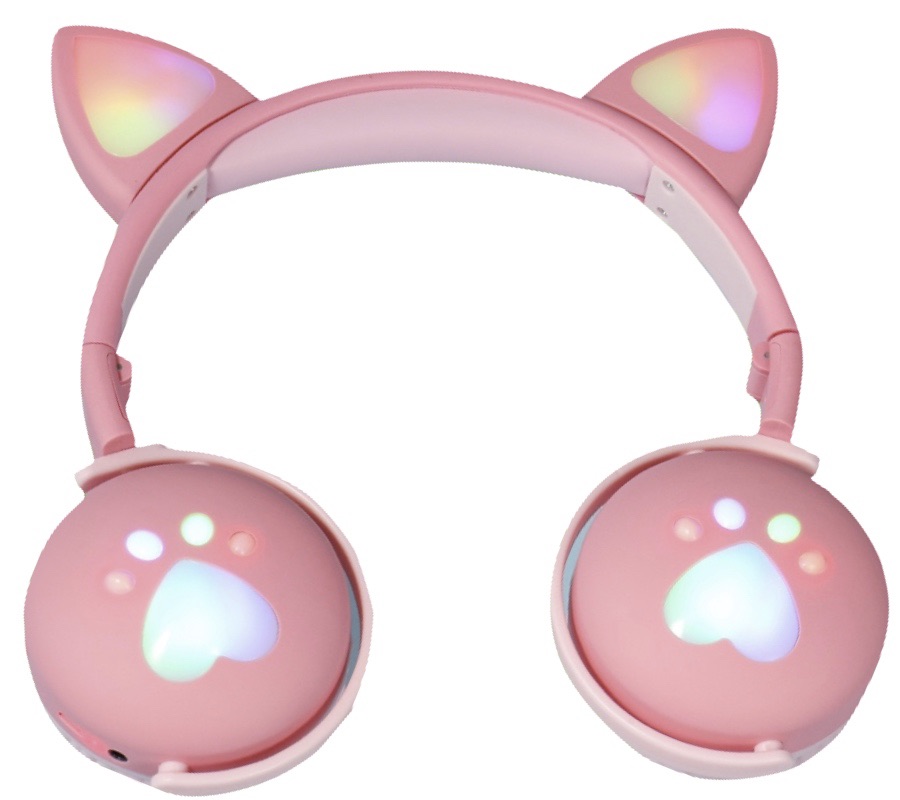 Audifono Diadema Inalámbrica EVA-Y BK1 Bluetooth, Orejas de Gato Rosa/Gris