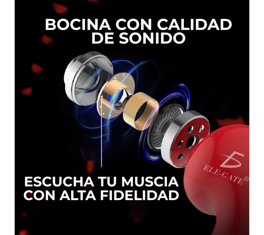 Audifono Inalámbrico In-Ear ELE-GATE EAR.BT.BT.X99, Reducción de Ruido, Bluetooth, Negro/Dorado/Rojo