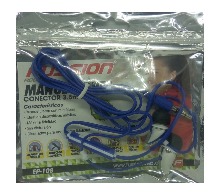 Audifonos Alámbricos FUSSION EP-108, 3.5mm con Micrófono, Azul/Plata