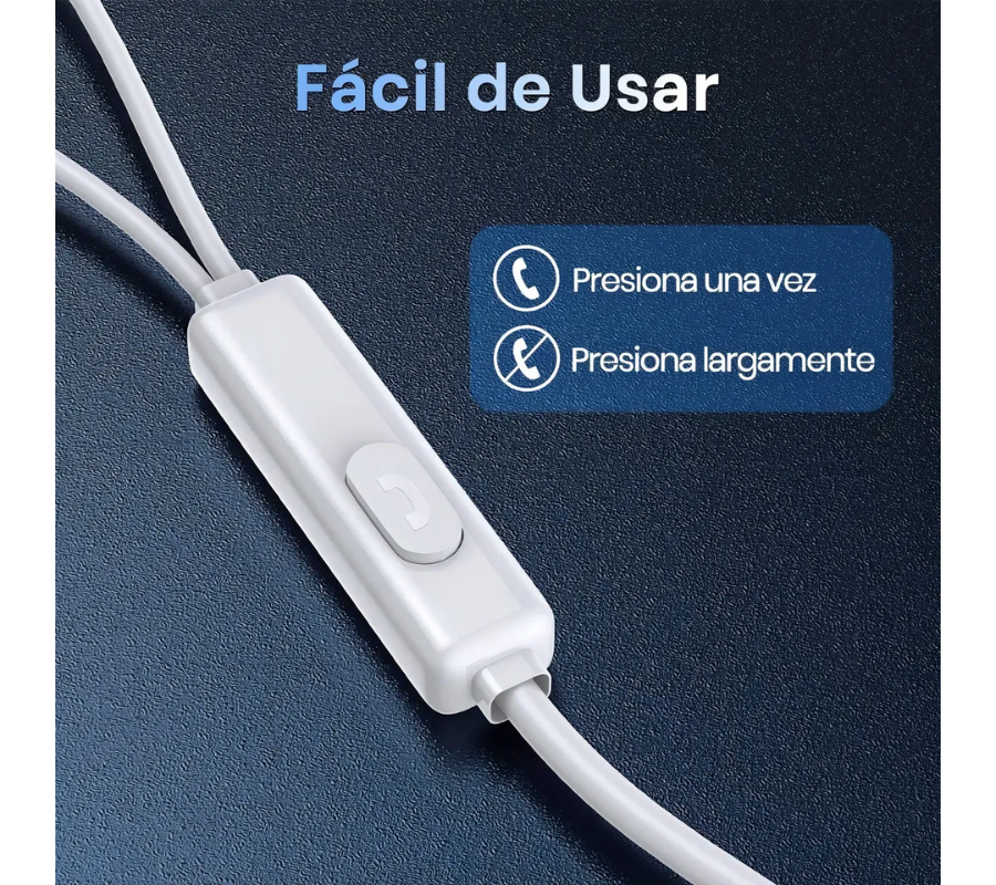 Conecta los audífonos al puerto tipo-C de tu dispositivo. Ajusta el volumen y controla llamadas o música desde el botón integrado. Ideales para escuchar música, ver videos o realizar videollamadas.