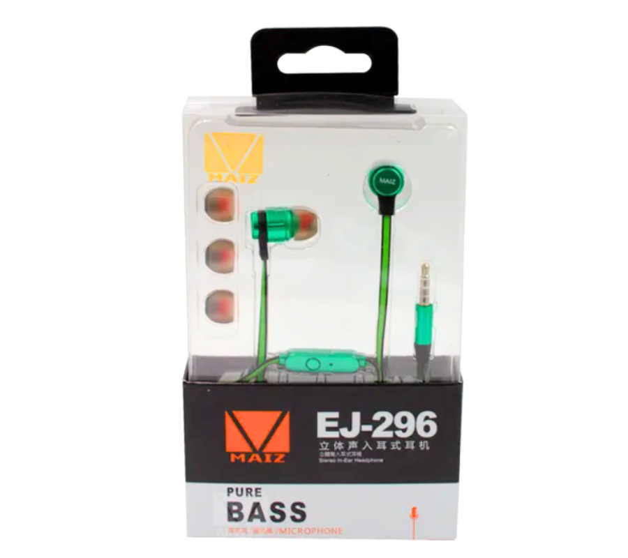 Audifonos In-Ear Alámbricos MAIZ EJ-296 PURE BASS, 3.5mm, Mic, Verde/Negro
