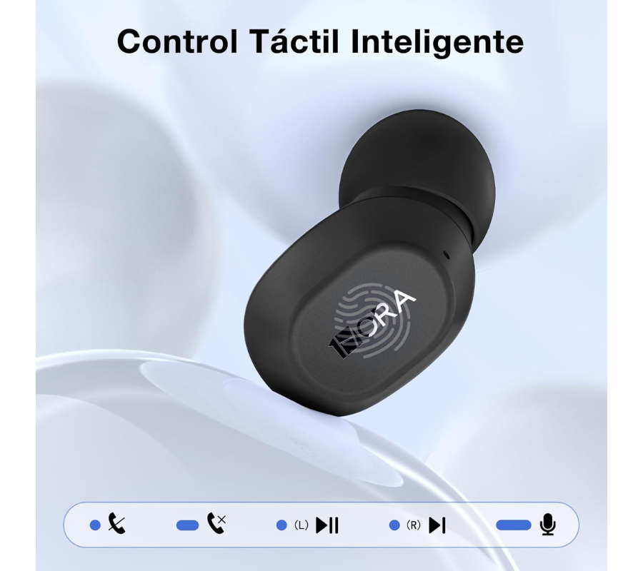 - Control Táctil Inteligente: La función de control táctil permite cambiar fácilmente entre canciones, responder llamadas y activar siri con un solo toque. Esto hace que la navegación a través de su contenido de audio sea sencilla y sin complicaciones