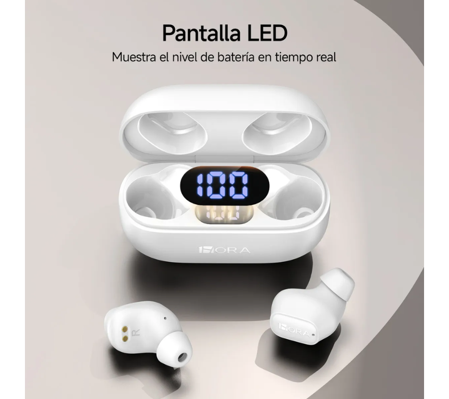 La pantalla LED integrada muestra de forma clara el nivel de batería del estuche de carga, permitiéndote conocer el estado de energía en todo momento.