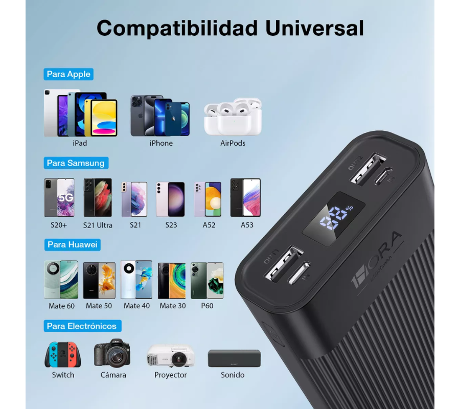 - Carga Segura: Nuestro Power bank 20000mAh contiene Chip integrado regula la energía de manera inteligente. Proporciona protección contra cortocircuitos de energía, protección contra sobre corriente, protección contra sobretensión y sobrecalentamiento para garantizar la seguridad de carga.