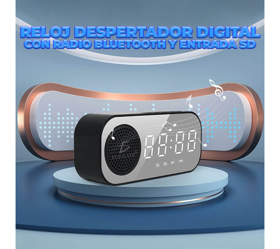 Con su micrófono incorporado, puedes disfrutar de llamadas manos libres con una claridad de voz excepcional. Además, su función de reloj de alarma te permite despertarte con tu música favorita o con la radio FM integrada, lo que te brinda una manera cómoda y personalizada de comenzar tu día.