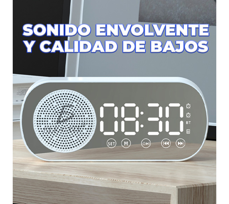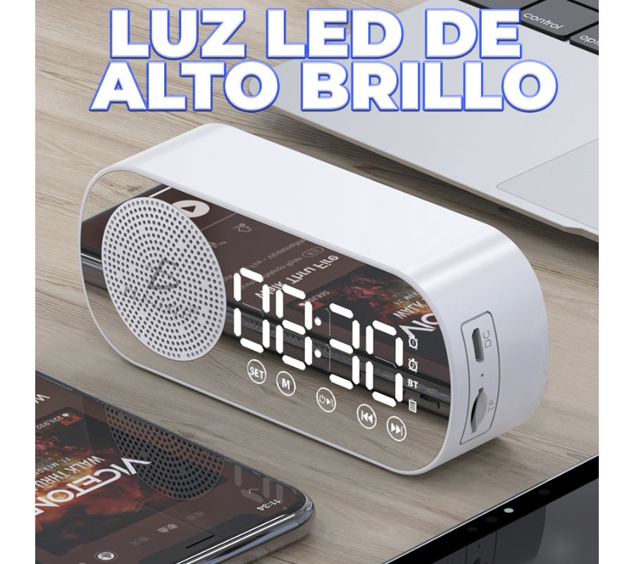 Estéreo Altavoz Inalámbrico Bluetooth 5.0 con Reloj Despertador