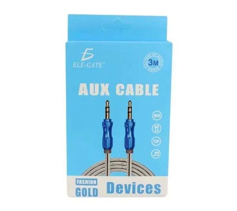 Disfruta de un mejor sonido y video conectando tus dispositivos con el cable auxiliar ELE GATE WI.96.3, cubierta tipo metal, puntas metálicas, de 3 metros de longitud.