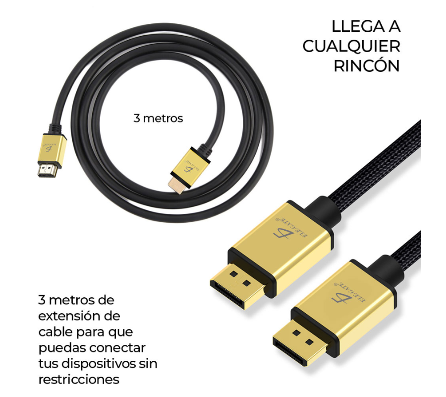 -Cable de tres metros, que puede abarcar grandes distancias para su conexión.