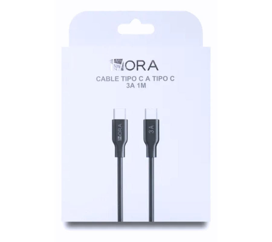 Cable Tipo C a Tipo C 1HORA CAB252, 1M, 3A, Negro