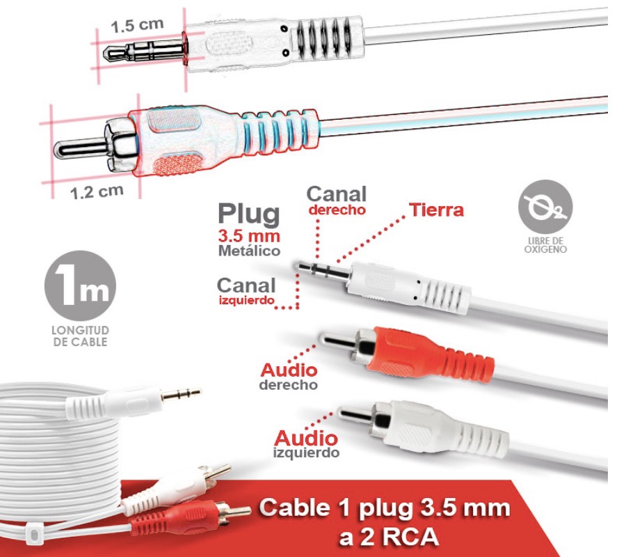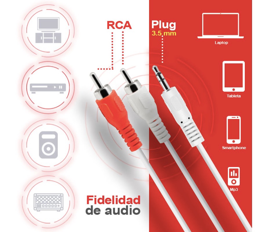 Cable Tipo Y Auxiliar 3.5mm Macho a 2 RCA Macho FUSSION AC-1010WH 1.7M, Blanco