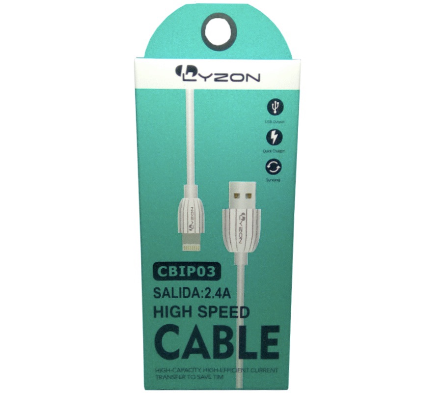 Cable USB a Lightning LYZON CBIP03 2.4A, 1M Blanco