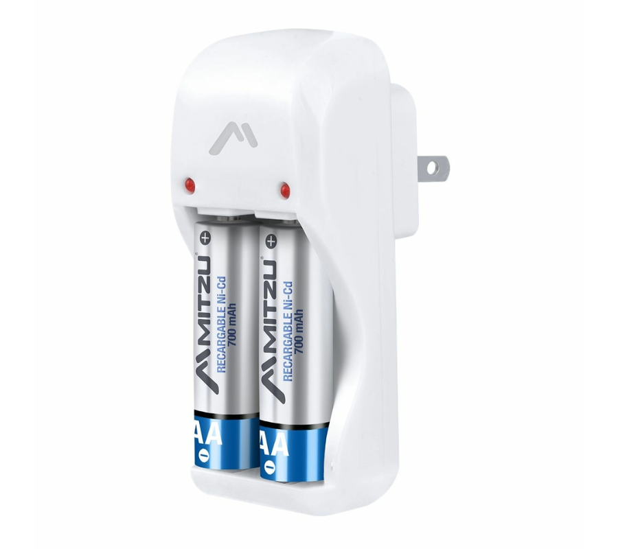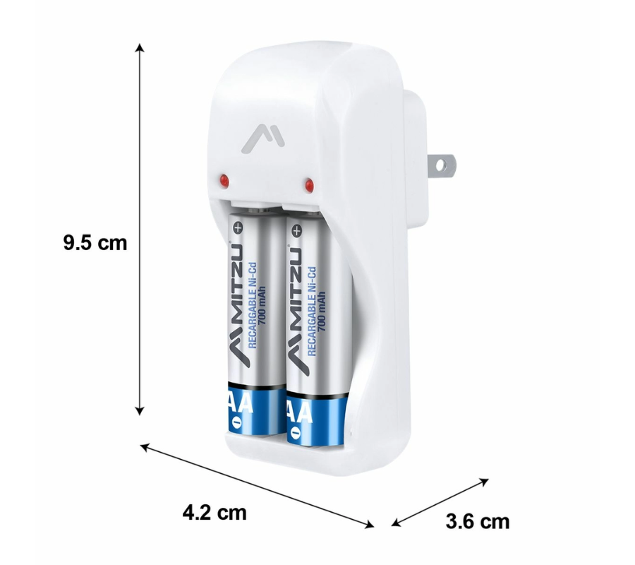 Cargador de 4 Pilas AA/AAA/9V MITZU MC-204, Contiene 2 Pilas Recargables AA, 700mAh