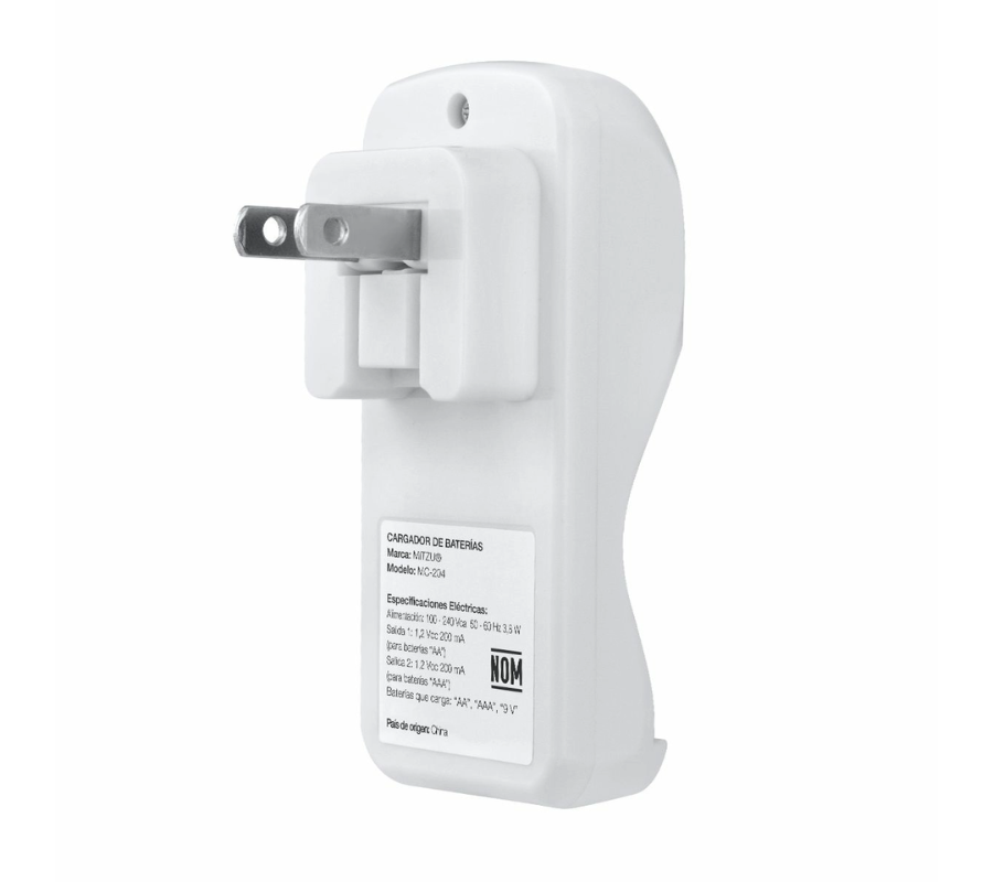 Cargador de pilas AA, AAA y 9V incluye 2 pilas AA y clavija Mitzu® MC-204