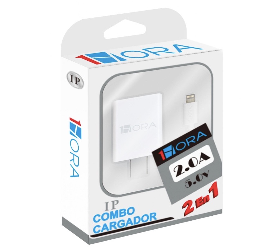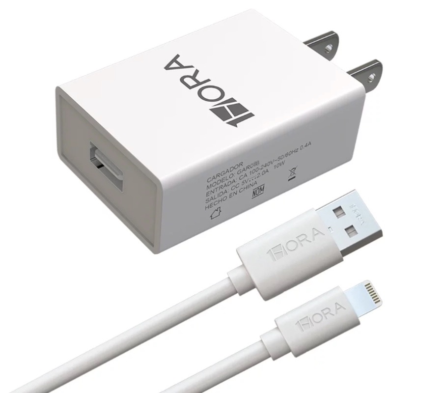 Cargador de Pared 2 en 1 Lightning 1HORA GAR088, 2.0A, 5.0V Cable USB + Cargador, Blanco