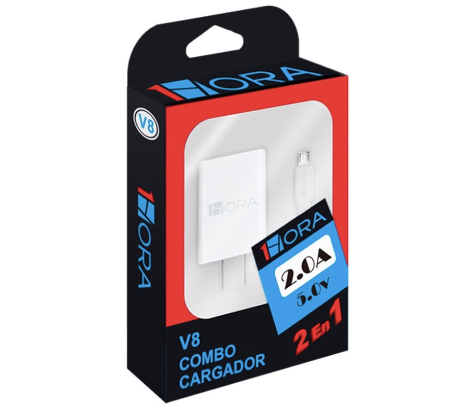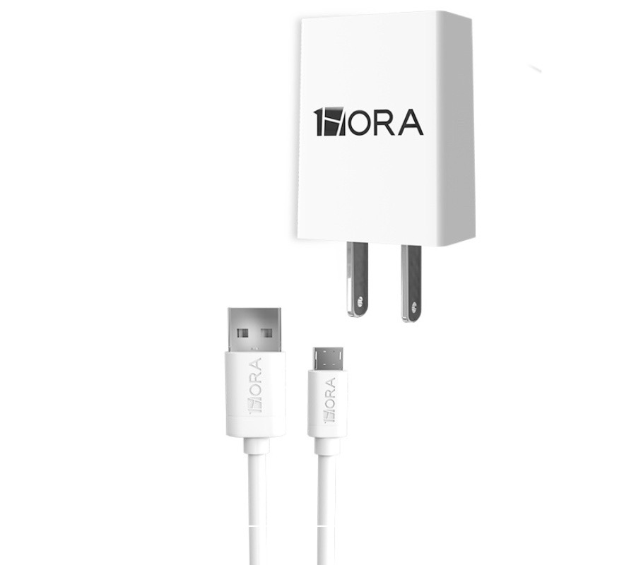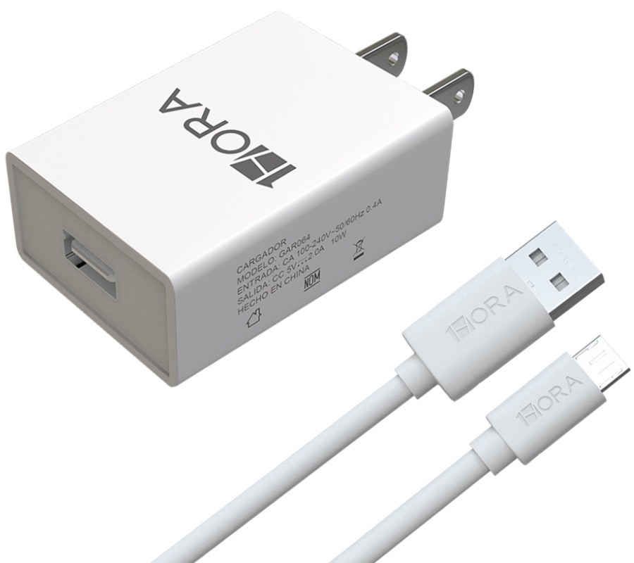 Cargador de Pared 2 en 1 Micro USB V8 1HORA GAR064, 2.0A Cable + Cargador, Blanco