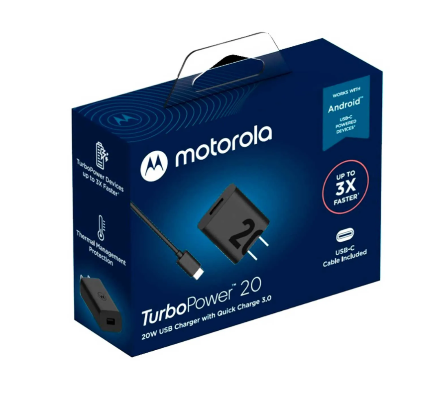 Turbo Cargador Motorola con Cable Usb a Tipo C 20 W de salida para cargar sus dispositivos a gran velocidad