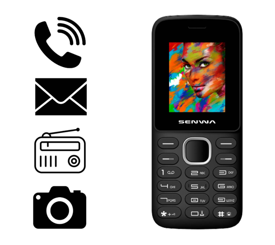 Sistema Operativo Spreadtrum + SENWA UI (propietario) Disco S301A de Senwa: dispositivo 2G que evoluciona con su nueva imagen, ideal para los que que extrañan la sensación de un teclado físico alfanumérico, cuenta con una pantalla de 1.8 pulgadas, captura foto y video con su cámara trasera de 0.3 MP con flash LED, comparte y recibe archivos vía Bluetooth 2.1 + EDR, cuenta con un procesador UNISOC 312 MHz 1 core que es garantía de gran fluidez, lleva tu música (MP3/MIDI/AMR) preferida a donde quiera que vayas o escucha tu estación de radio FM favorita, podrás expandir la memoria hasta 32 GB a través de una micro SD. Dimensiones: 110*47*14.03mm Peso: Neto: 71 g / Bruto: 152.7 g grs. Duración de la batería: Tiempo de conversación: 8H - 2G (llamada) Tiempo de espera: 533 Hrs Tiempo de carga continua: N/A Tecnología: Bandas y Frecuencias disponibles: 4G N/A 3G N/A GSM 850/900/1800/1900 MHz