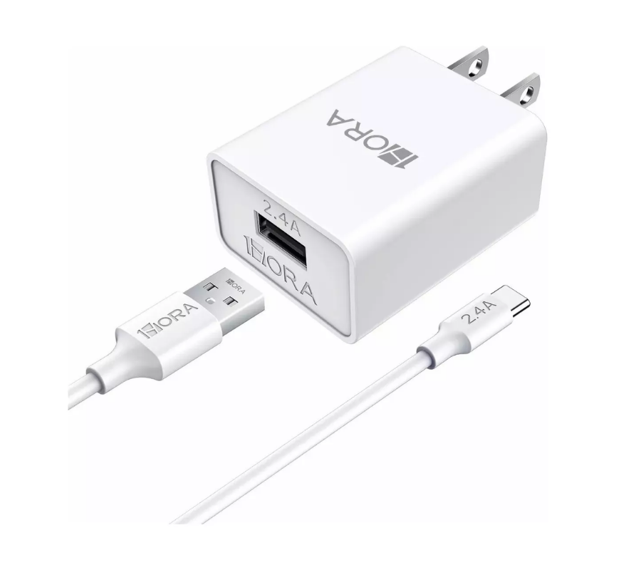 Combo Cargador de Pared 1 puerto USB a Tipo C 1HORA GAR142, 2.4A Cable + Cargador 12W, Blanco