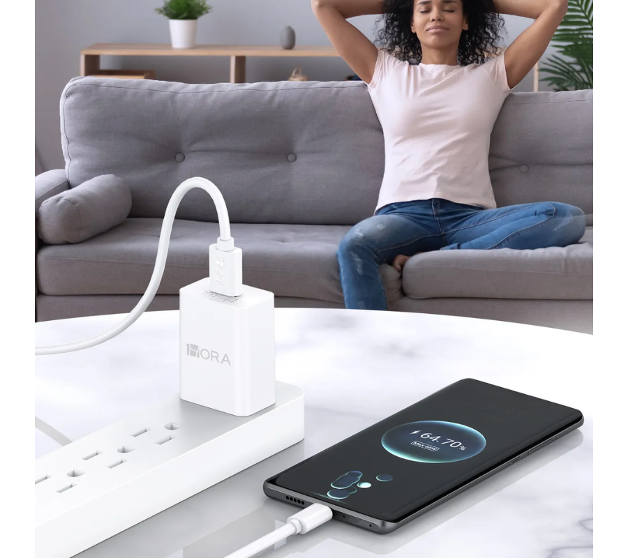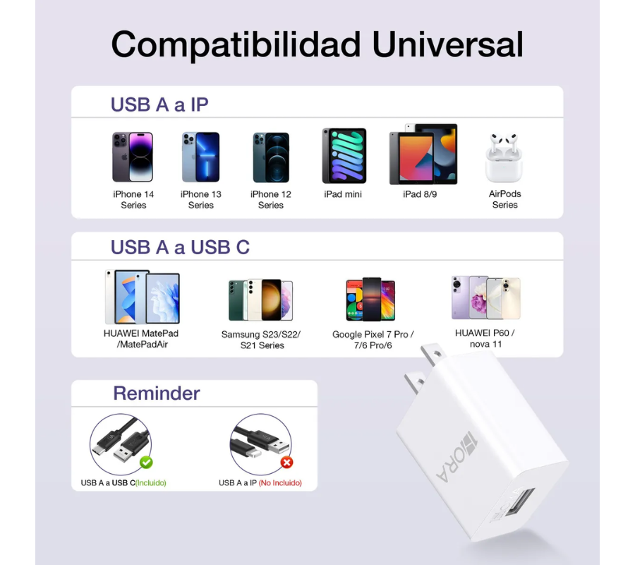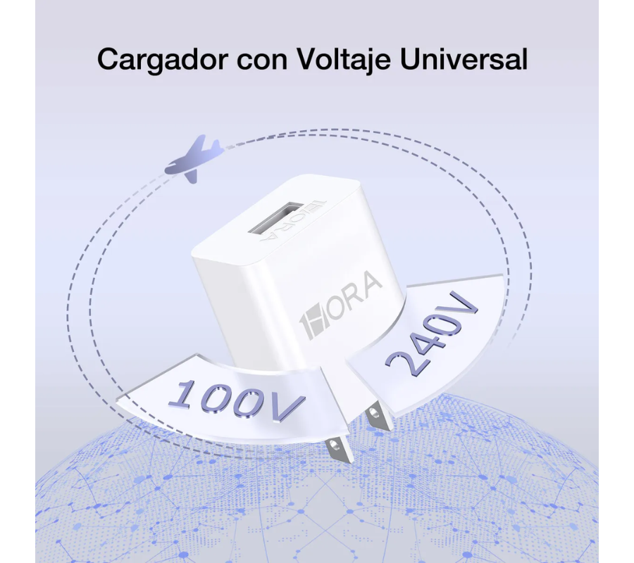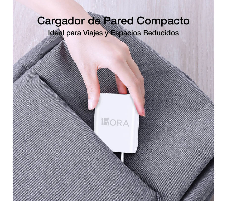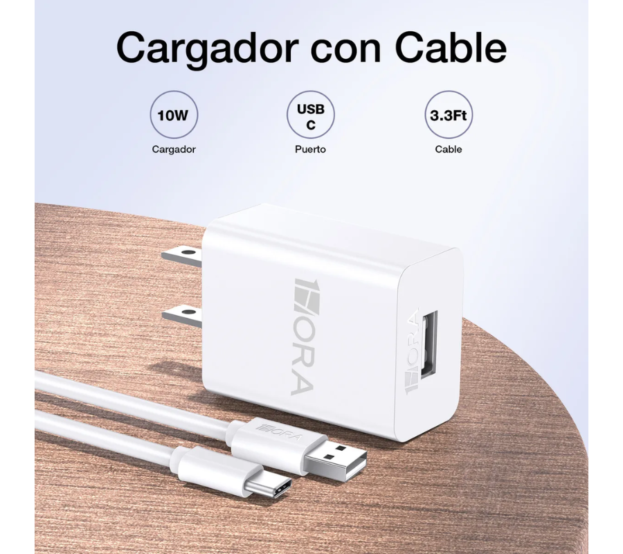 Combo Cargador de Pared Tipo C 1HORA GAR080, 2.0A Cable + Cargador 10W, Blanco