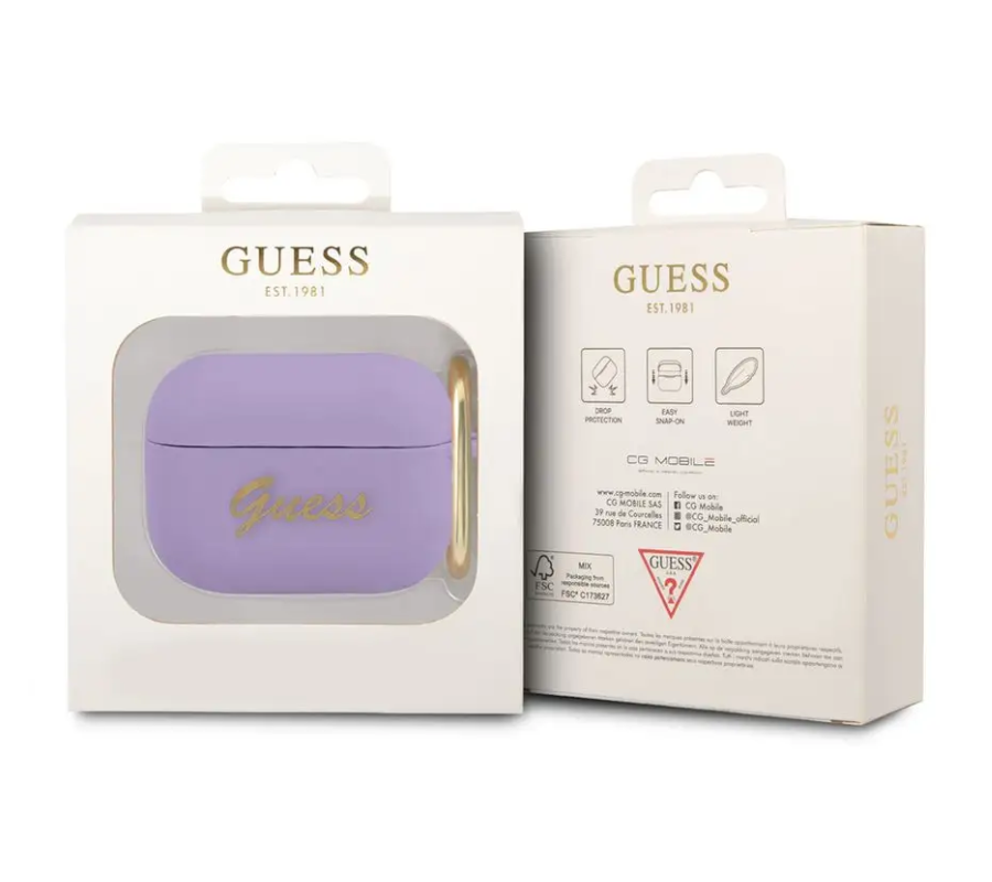 Funda GUESS Silicone con gancho para APPLE Airpods Pro, Morado/Dorado