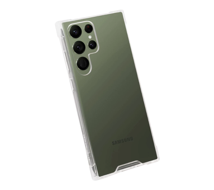 Resistente en todo momento para tu nuevo S23 Ultra Hecho a base de materiales resistentes y de calidad Especial para uso rudo Bordes gruesos que protegen las cámaras y pantalla de tu celular Contorno brillante Suave al tacto y cómodo para sostener