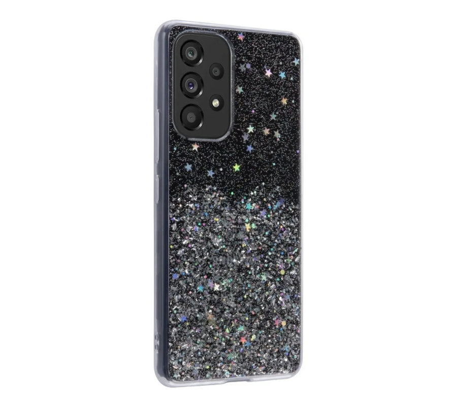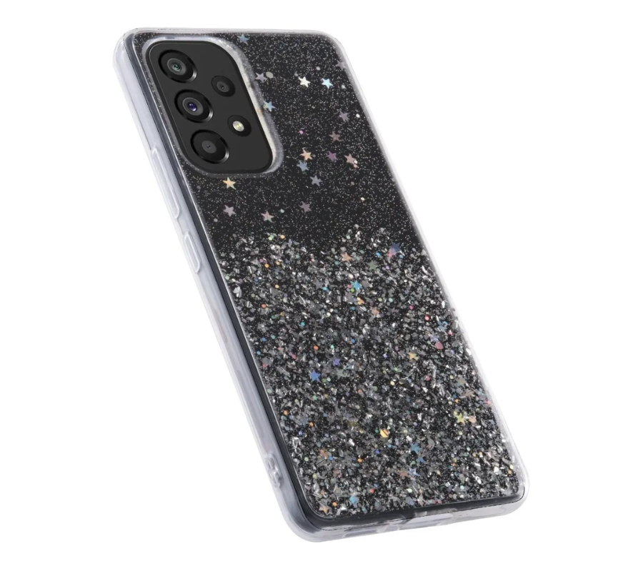 Glam Star es el accesorio perfecto si lo tuyo es el glamour, el brillo y la elegancia, esta funda esta diseñada para ser compatible con tu Samsung A53 5G. Hecha de un material resistente que ayuda a proteger tu teléfono contra caídas, rasguños y otros daños. La funda tiene un diseño brillante y llamativo, con impresión de estrellas iridiscentes en la parte trasera que lucen casi mágicas por su fondo negro que las hace lucir aun más, haciendo la funda perfecta para aquellos que quieren agregar un toque de personalidad a su dispositivo. Además, la funda está diseñada para proporcionar un fácil acceso a todos los botones y puertos del Samsung A53 5G, lo que significa que puedes usar tu teléfono sin tener que sacar la funda.