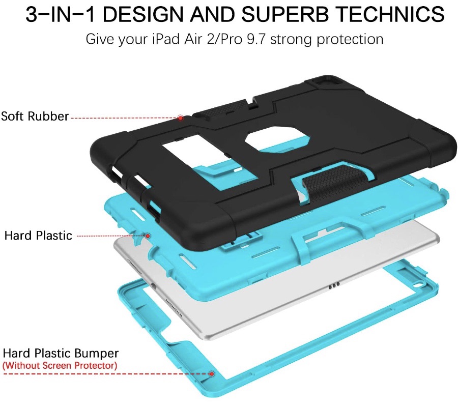 Funda para IPAD AIR2/Pro 9.7 GENERICA, Uso Rudo, Negro/Azul