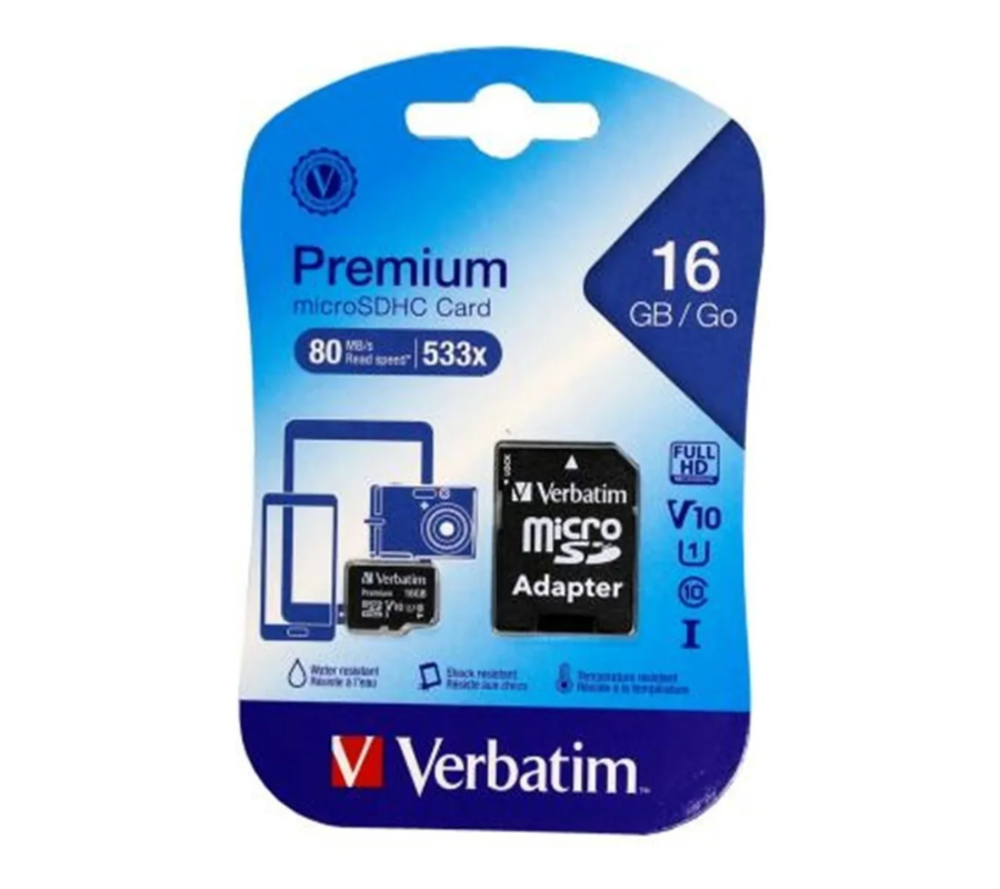 Tarjeta de memoria microSDHC de 16GB Premium de Verbatim con adaptador, UHS-I Clase 10: las tarjetas de memoria microSDHC de Verbatim Premium son una combinación ideal para teléfonos inteligentes y tabletas equipadas con una ranura microSD.