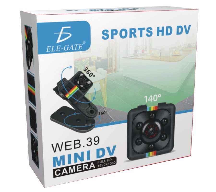 Mini Camara Espia ELE-GATE WEB39, Deteccion Movimiento, Nocturna Full Hd, Negro