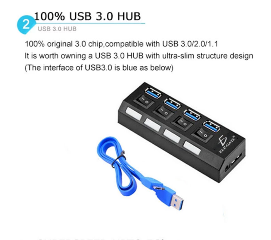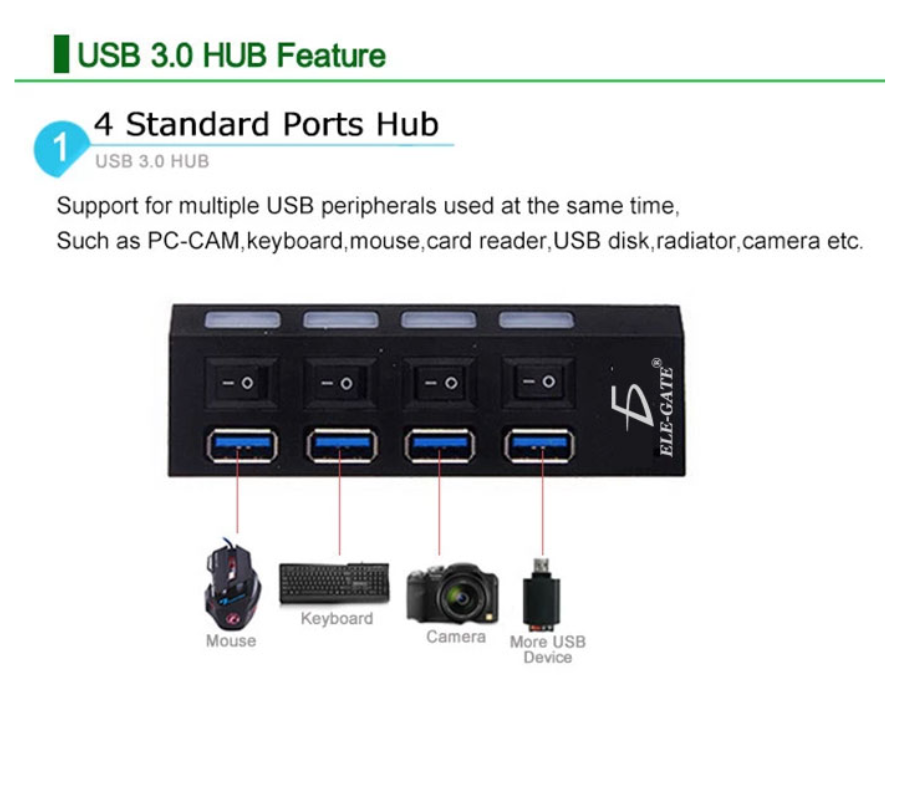 Mini HUB USB ultra delgado de 4 puertos ELE-GATE HUB.13.3.0 USB 3.0, 5Gbps Negro