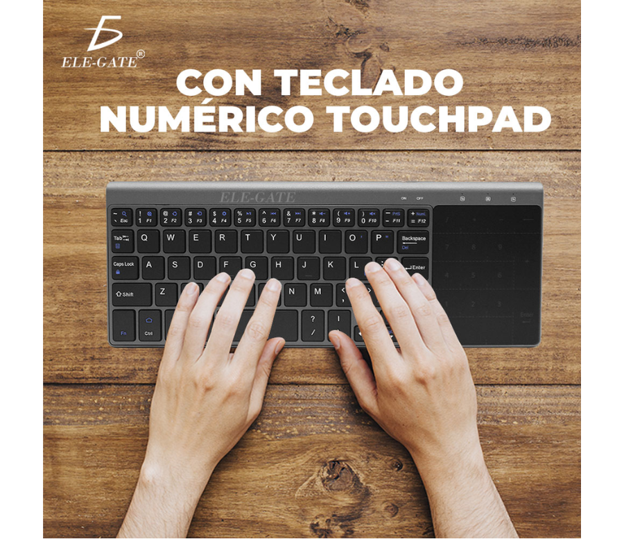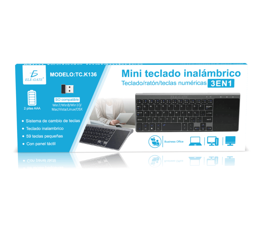 Mini Teclado Inalámbrico Recargable ELE-GATE PORTATIL SLIM TC.K136, 10M 3 en 1 WIN/IOS/Android Negro