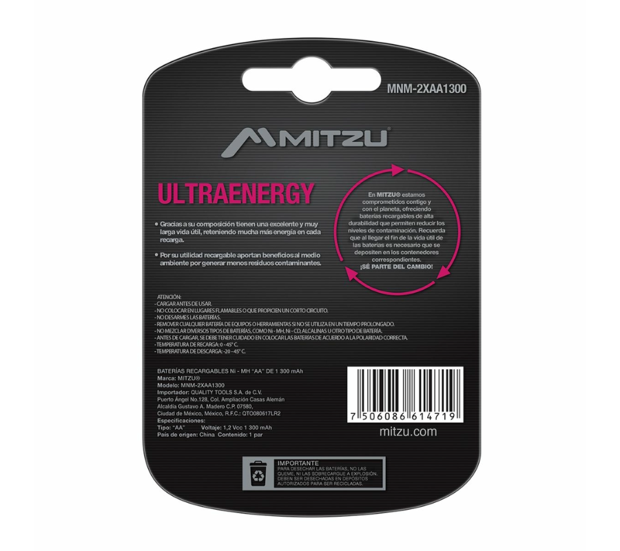 La batería MNM-2XAA1300 de Mitzu forma parte de la línea de productos recargables de la marca, ofreciendo calidad y rendimiento en cada uso.