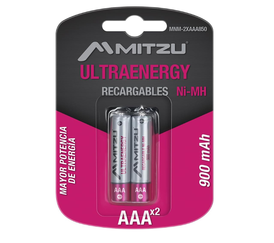Pilas Recargables AAA 2 PZ MITZU ULTRA ENERGY MNM-2XAA900, Ni-MH 900 mAh, Rosal/Gris