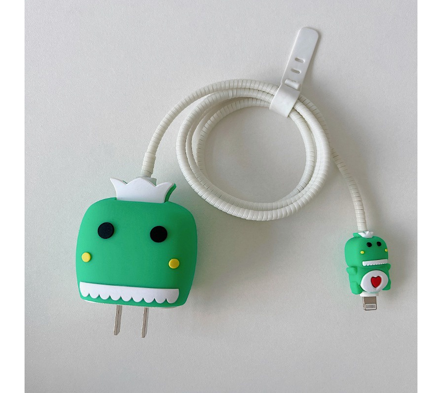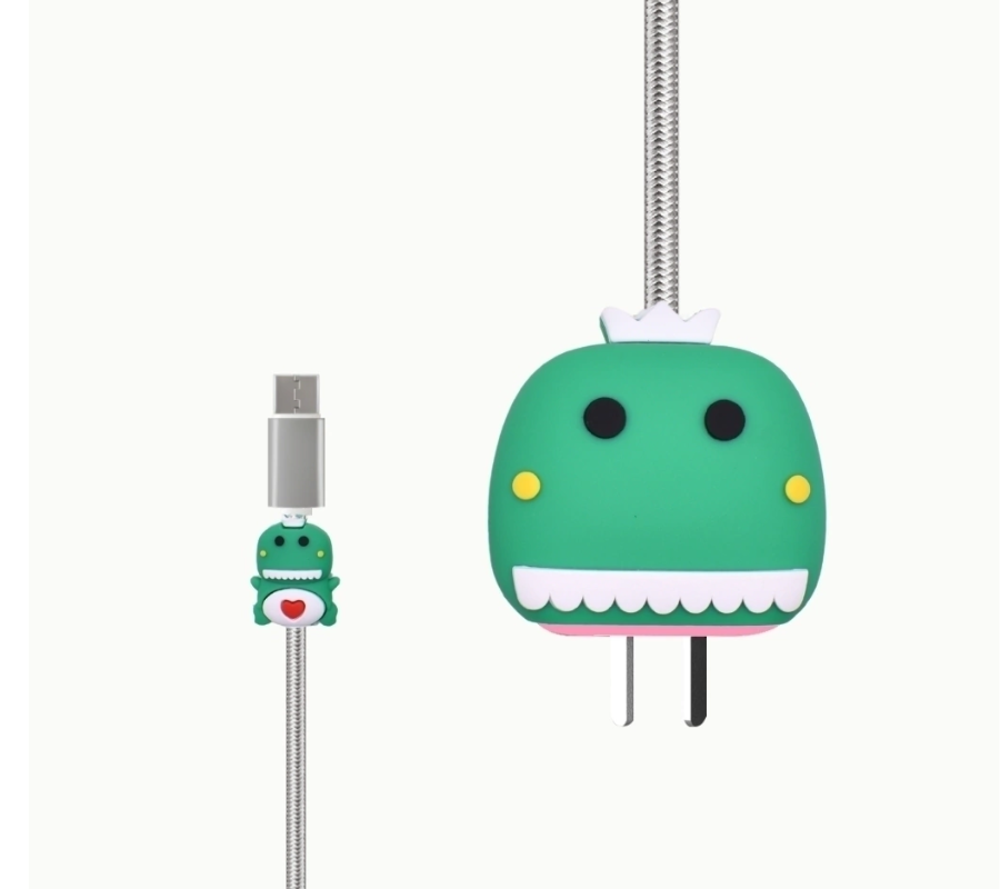 Protector de Cargador & Cable GEN Goma Figura, Cara Bebe Dino, Verde/Blanco