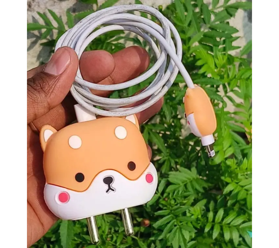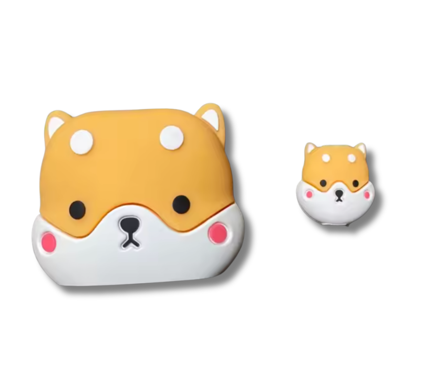 Protector de Cargador & Cable GEN Goma Figura, Cara de Perro Shiba, Amarillo/Blanco