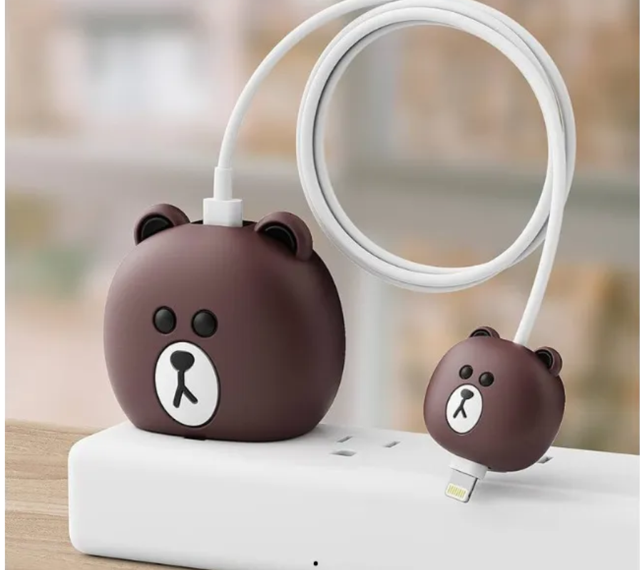 Protector de Cargador & Cable GEN Goma Figura, Cara Oso, Cafe/Blanco