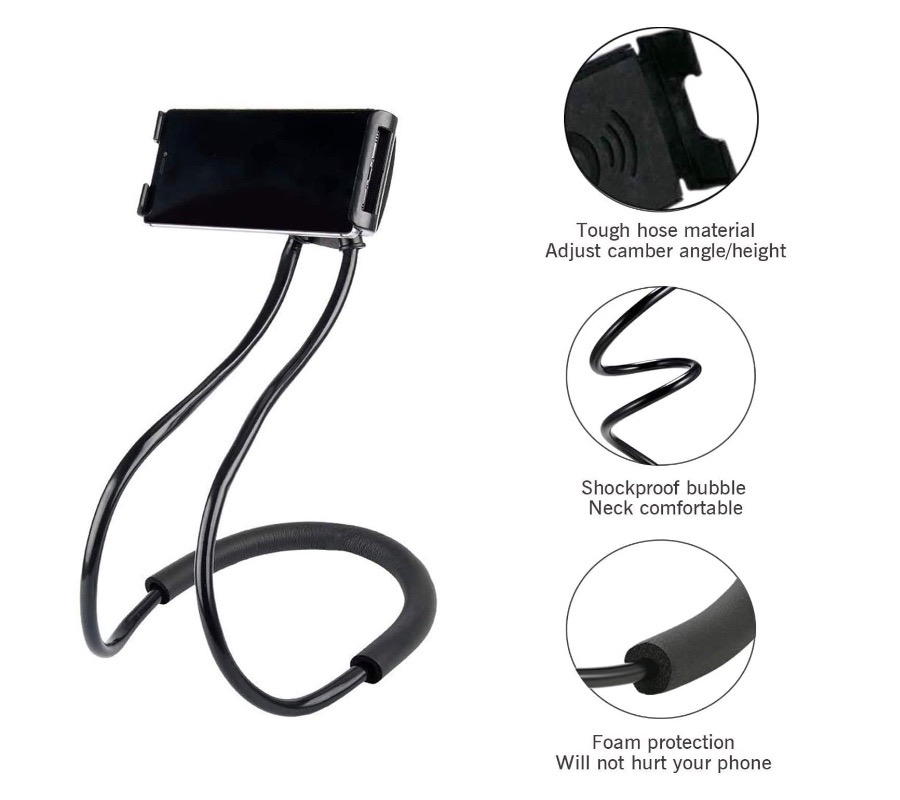 Soporte Celular Cuello Holder Flexible Soporte hecho de aleación de aluminio y magnesio, es estable y puedes colocar tu telefono en posiciones únicas y cómodas. Se puede rotar 360 grados y se puede ajustar al ángulo que más se acomode.